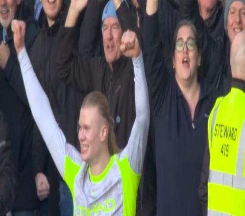 客场作战的曼城并未占据主动,水晶宫则不断创造破门机会。然而,比赛的第41分钟,努内斯右路横传,无人盯防的哈兰德头球冲顶破门,1比0!